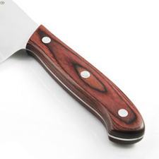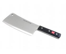 Cleaver–There are two types of cleavers. Chinese cleavers are light in weight and used for cutting vegetables. A meat cleaver is larger and heavier and used for splitting or “cleaving†meat and bone. The knife is designed to cut with a swift stroke without cracking, splintering or bending the blade.