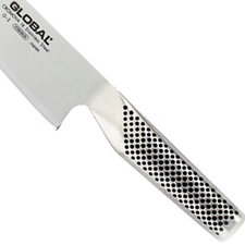 A Japanese chef’s knife is known as a gyuto, literally meaning ‘beef knife’. Its blade resembles a flatter version of a French chef’s knife. Japanese cutlery is known for sharpness due to its acute blade geometry, and the hardness of the steel used. A typical western chef’s knife may be sharpened to an edge angle of 20-22°, while a Japanese gyuto generally has a sharper edge angle of 15-18°, which requires a harder, more brittle grade of steel.