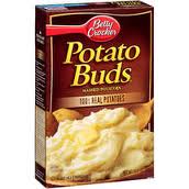 7.  A box of potato buds is shown.Margarine.  There’s just no reason to use this stuff to cook with at home.  It’s loaded with trans-fats and it can’t compare to butter for flavor.  In commercial bakeries it may be used due to its lower cost.